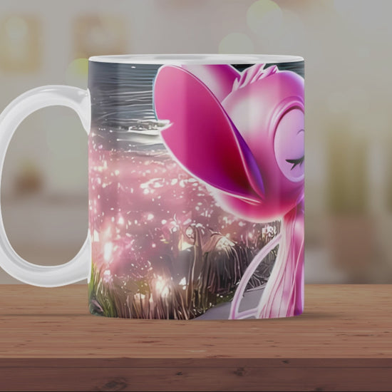 Bring a touch of adorable romance to your daily routine with this beautifully designed Romantic Stitch & Angel Love Mug. Featuring a vibrant, high‑quality print of the beloved blue and pink duo sharing a sweet moment, this mug adds warmth, colour, and charm to every sip.