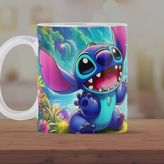 Bring a burst of colour and pure joy to your morning routine with this Stitch & Pikachu Tropical Adventure Mug. Designed for fans who love playful, feel‑good art, this mug features a bright, high‑energy illustration of two beloved characters sharing a serene tropical moment.